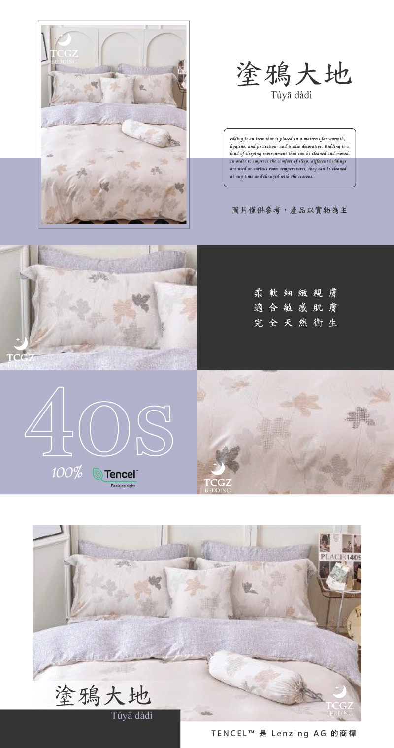 Tencel天絲™萊賽爾纖維製成的 100%40支 【塗鴉大地】 薄床包舖棉兩用被四件式組