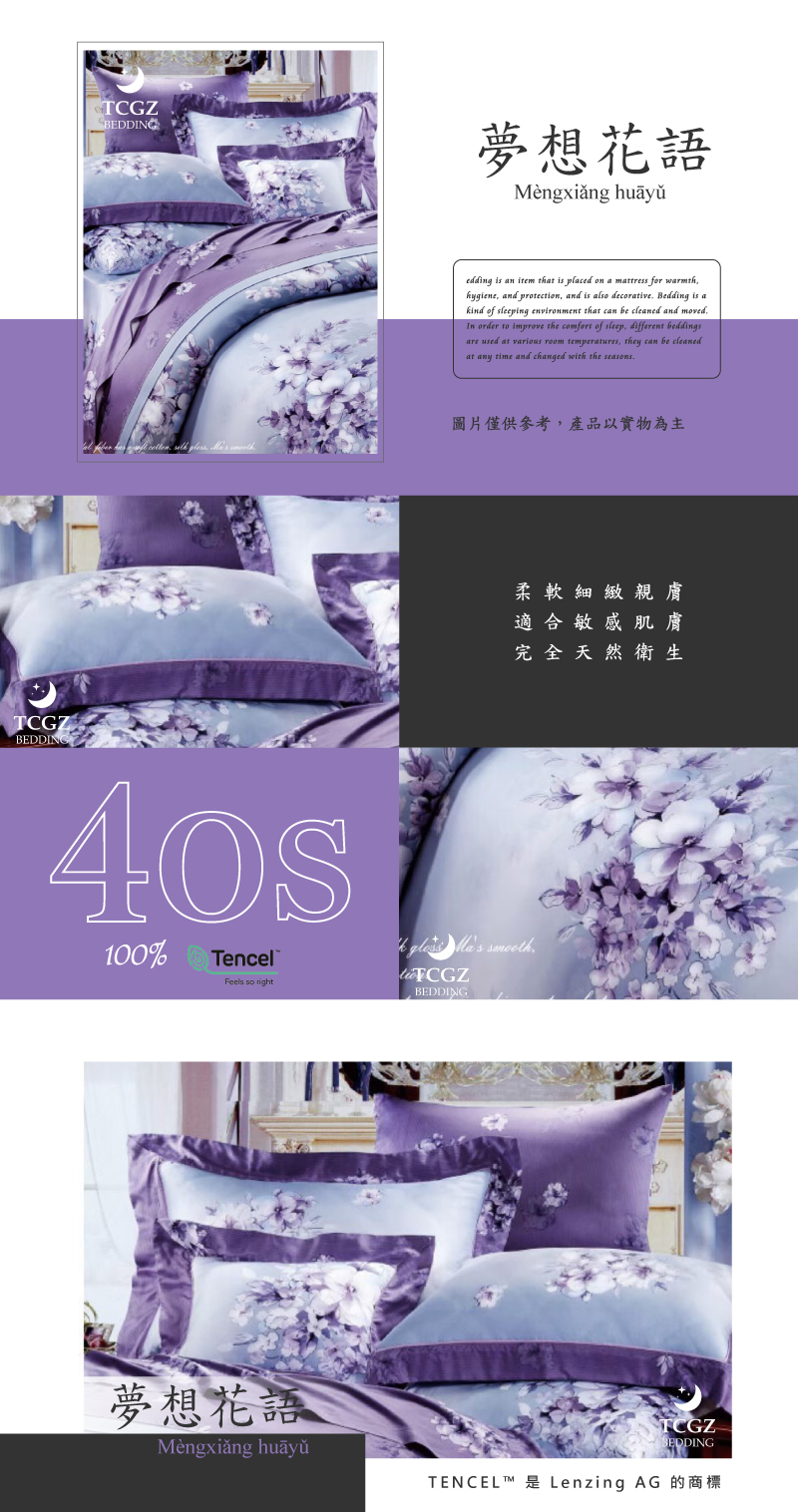 Tencel天絲™萊賽爾纖維製成的 100%40支 【夢想花語】 薄床包舖棉兩用被四件式組