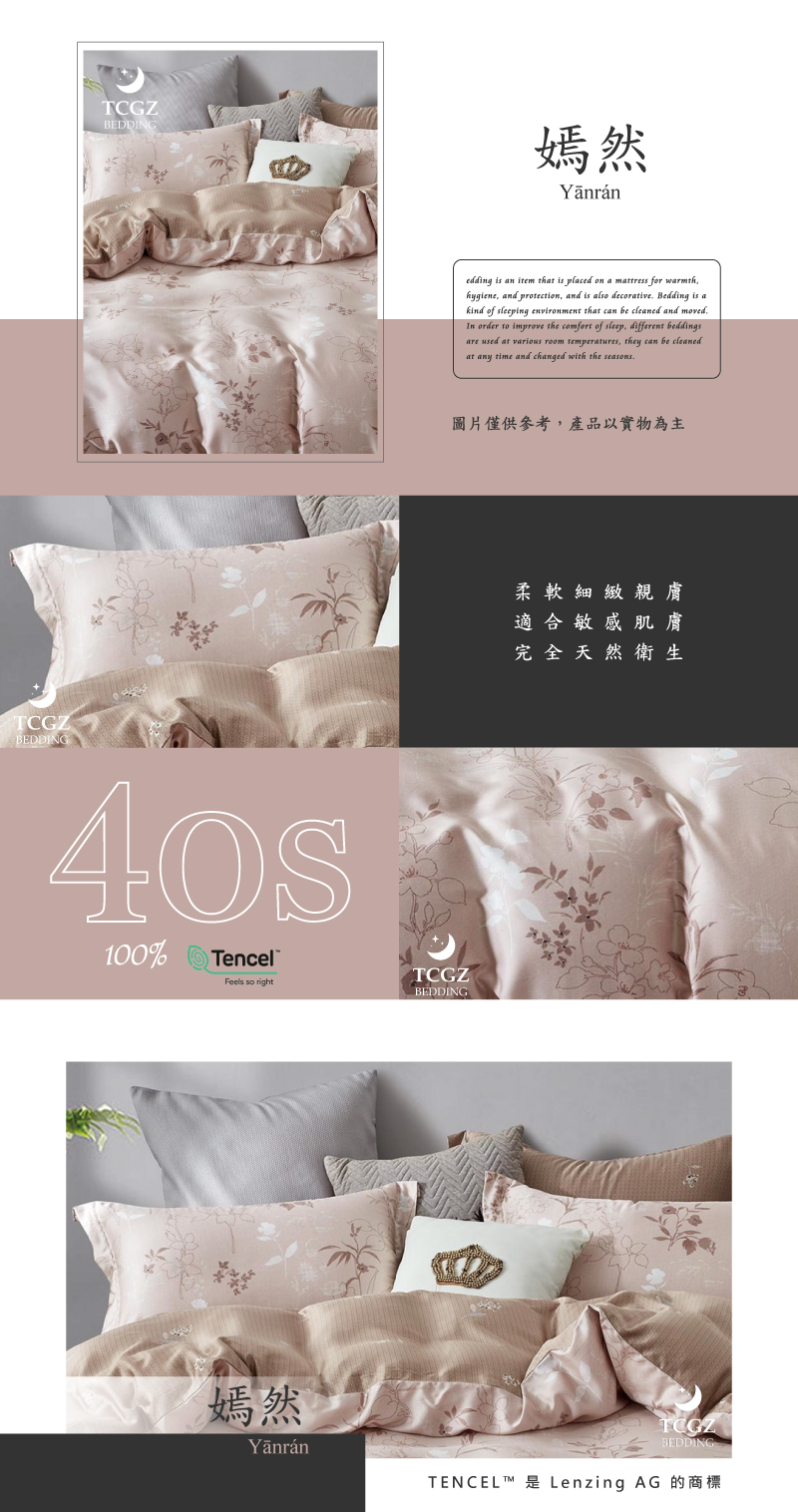 Tencel天絲™萊賽爾纖維製成的 100%40支 【嫣然】 舖棉床罩舖棉兩用被七件式組