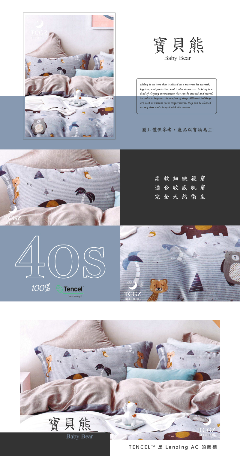 Tencel天絲™萊賽爾纖維製成的 100%40支 【寶貝熊】 薄床包舖棉兩用被四件式組