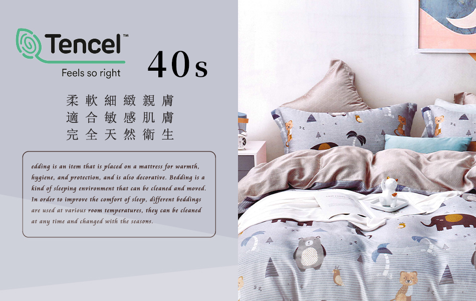 Tencel天絲™萊賽爾纖維製成的 100%40支 【寶貝熊】 鋪棉床包舖棉兩用被四件式組-40aa