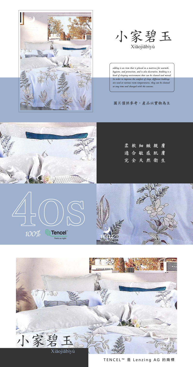 Tencel天絲™萊賽爾纖維製成的 100%40支 【小家碧玉】 舖棉床罩舖棉兩用被七件式組