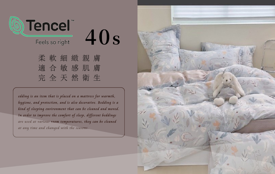 Tencel天絲™萊賽爾纖維製成的 100%40支 【小淘氣】 薄床包舖棉兩用被四件式組-40ab