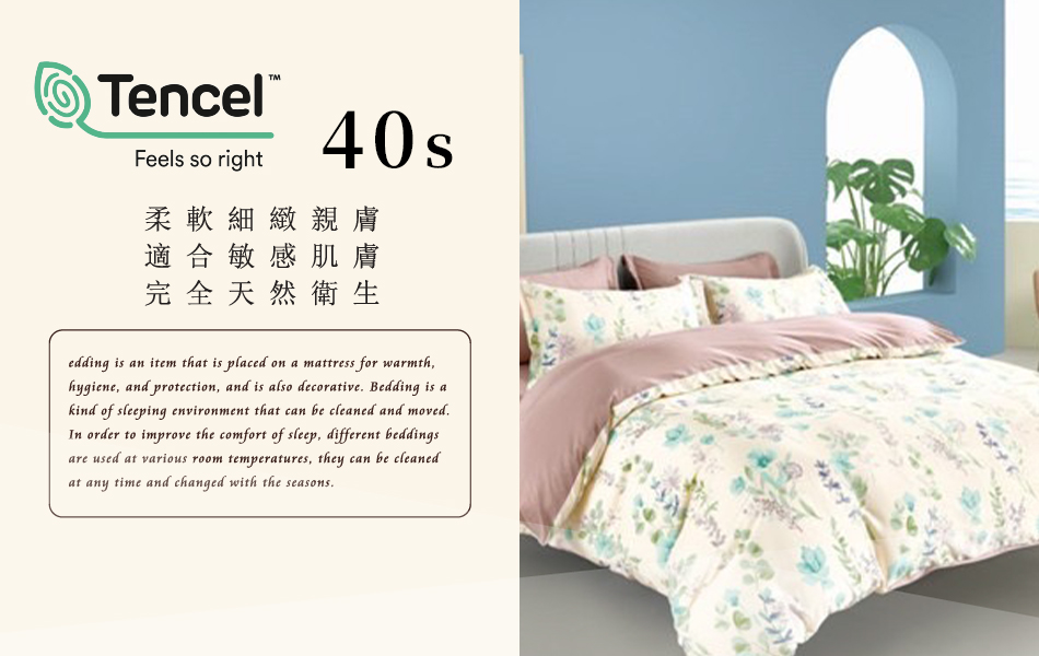 Tencel天絲™萊賽爾纖維製成的 100%40支 【小清新2】 薄床包舖棉兩用被四件式組-40ab