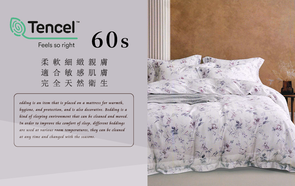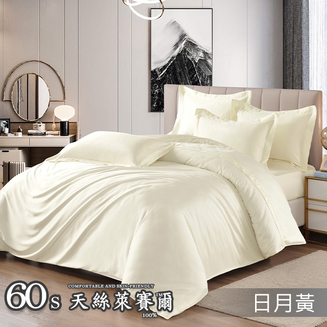 Tencel天絲™萊賽爾纖維製成的 100%60支 【巴頓花園-黃】 鋪棉床包舖棉兩用被四件式組-60aa