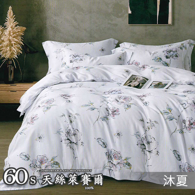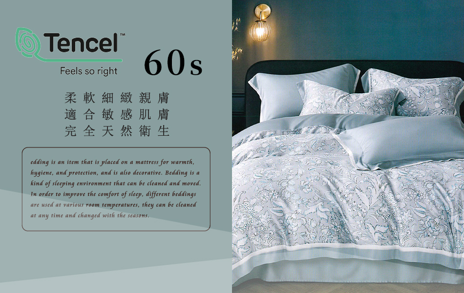 Tencel天絲™萊賽爾纖維製成的 100%60支 【弗蘭尼亞-藍】 薄床包舖棉兩用被四件式組-60ab