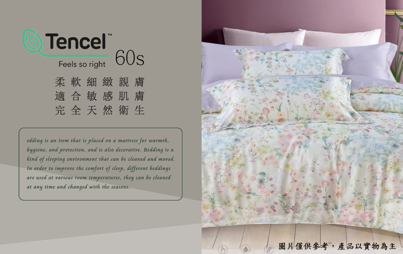 Tencel天絲™萊賽爾纖維製成的 100%60支 【彩色濱菊】 薄床包舖棉兩用被四件式組 數量