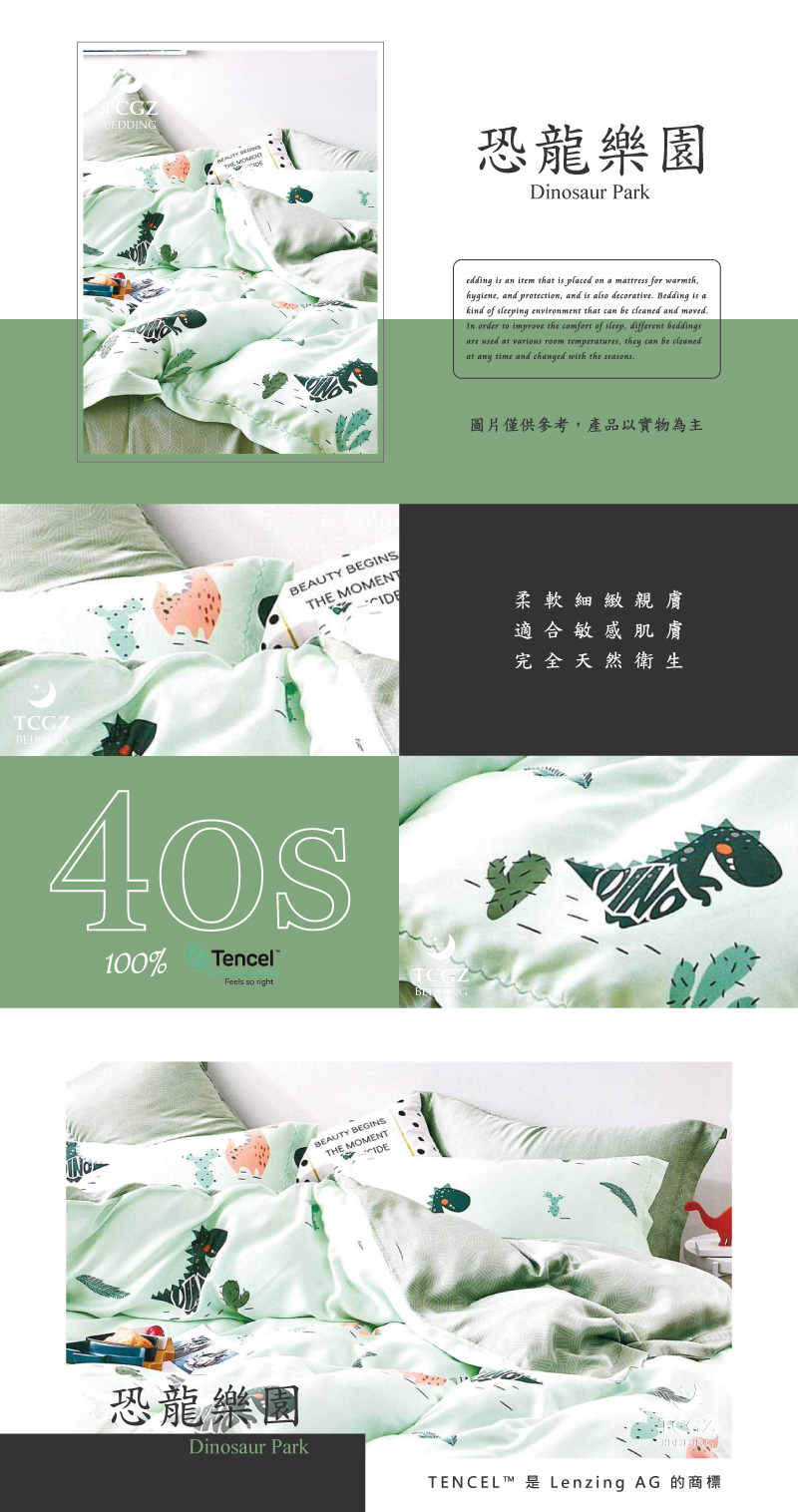Tencel天絲™萊賽爾纖維製成的 100%40支 【恐龍樂園】 薄床包舖棉兩用被四件式組