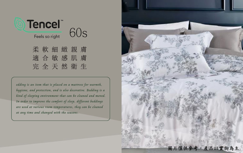 Tencel天絲™萊賽爾纖維製成的 100%60支 【戶子雨】 薄床包舖棉兩用被四件式組