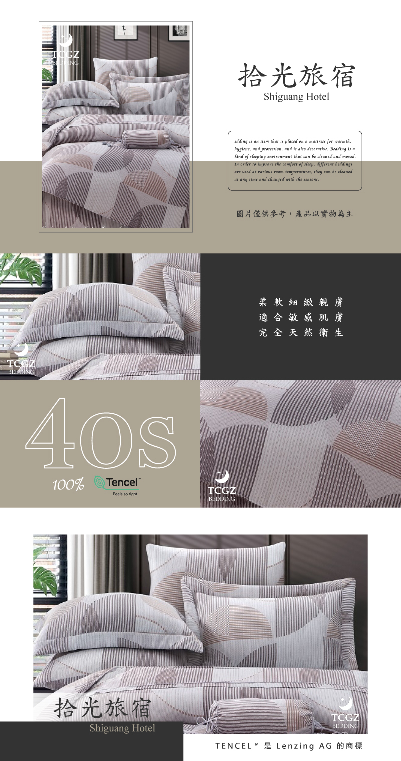 Tencel天絲™萊賽爾纖維製成的 100%40支 【拾光旅宿】 薄床包舖棉兩用被四件式組