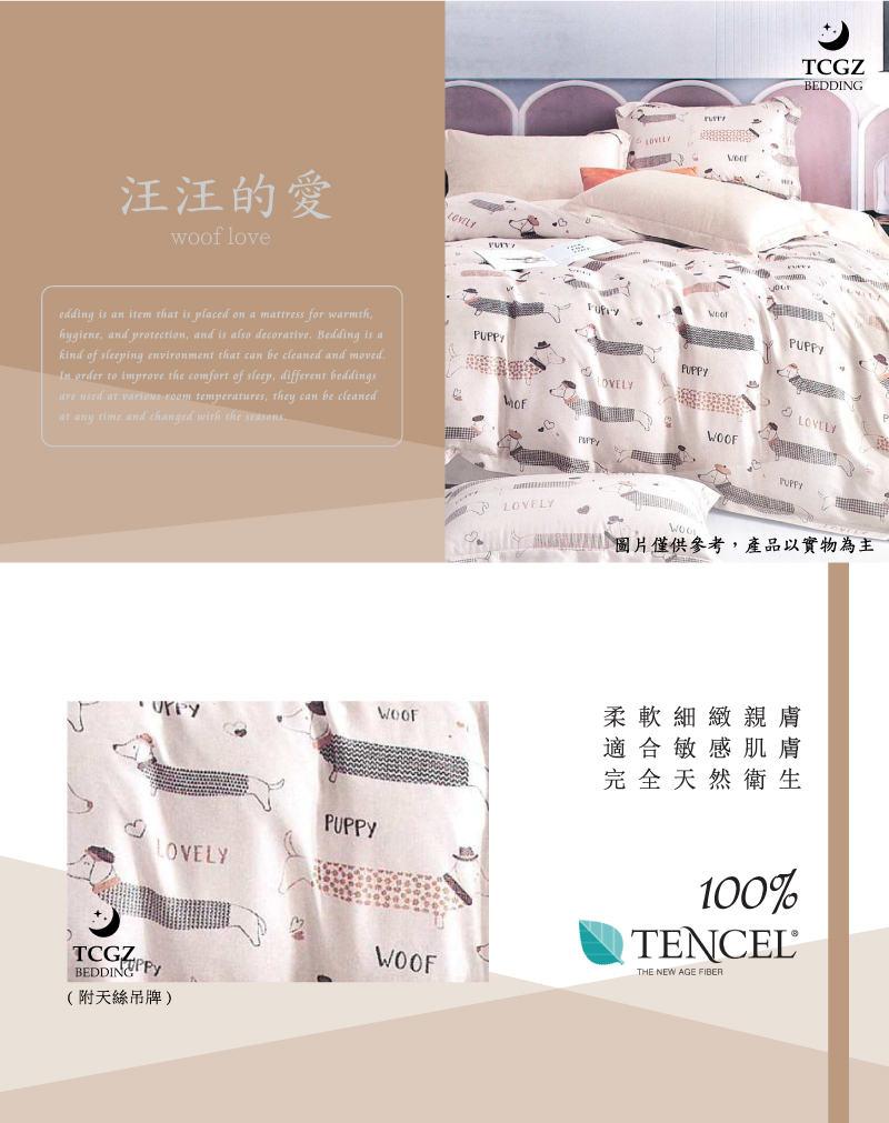 Tencel天絲™萊賽爾纖維製成的 100%40支 【汪汪的愛】 薄床包舖棉兩用被四件式組