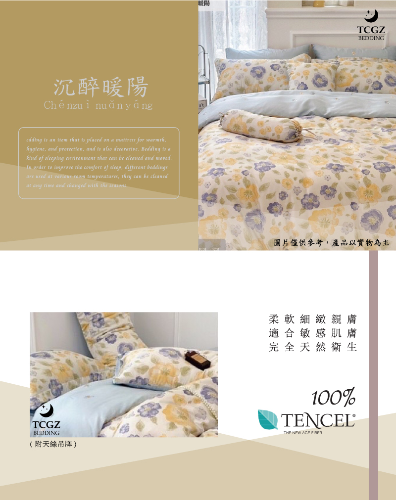 Tencel天絲™萊賽爾纖維製成的 100%40支 【沉醉暖陽】 薄床包舖棉兩用被四件式組