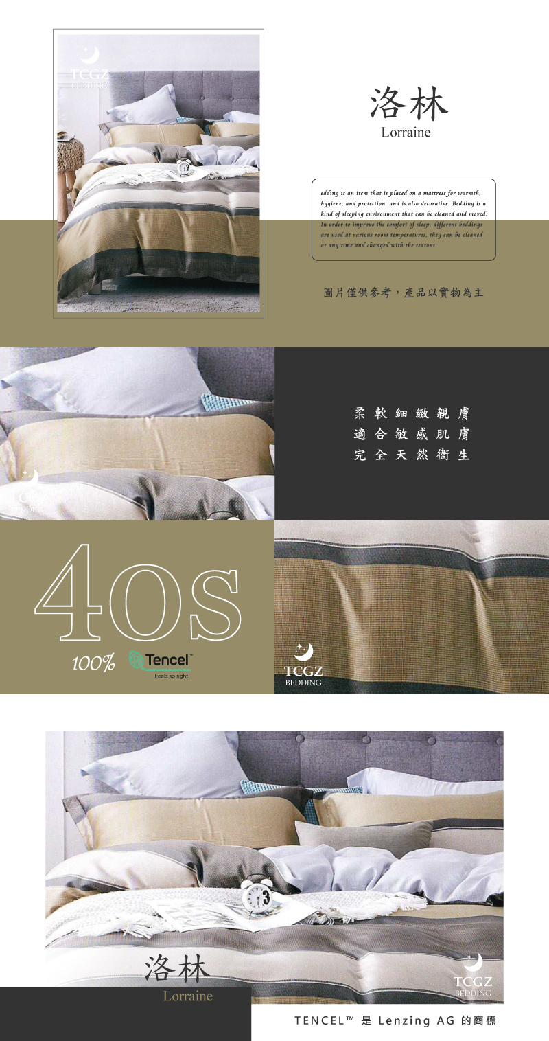 Tencel天絲™萊賽爾纖維製成的 100%40支 【洛林】 薄床包舖棉兩用被四件式組