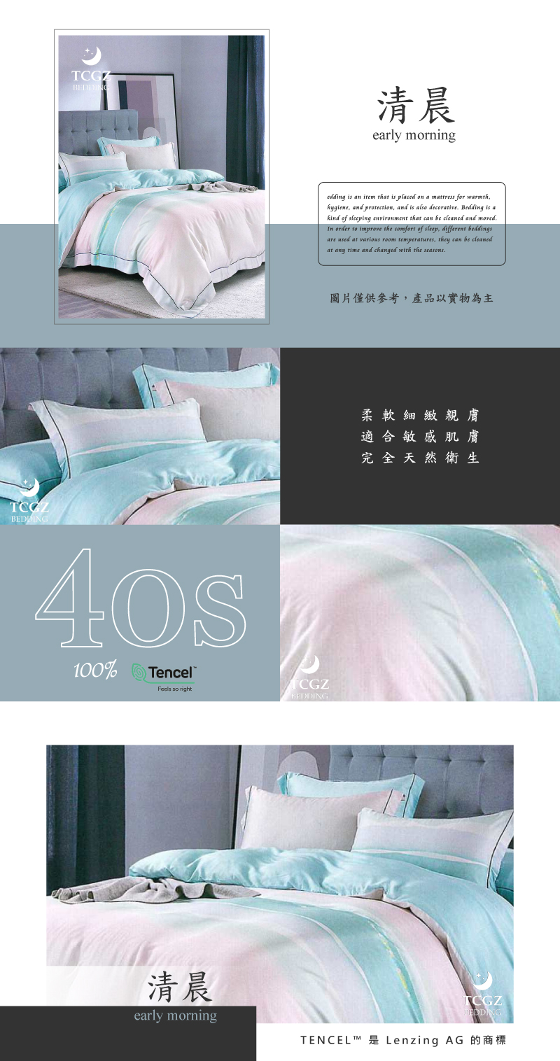 Tencel天絲™萊賽爾纖維製成的 100%40支 【清晨】 舖棉床罩舖棉兩用被七件式組