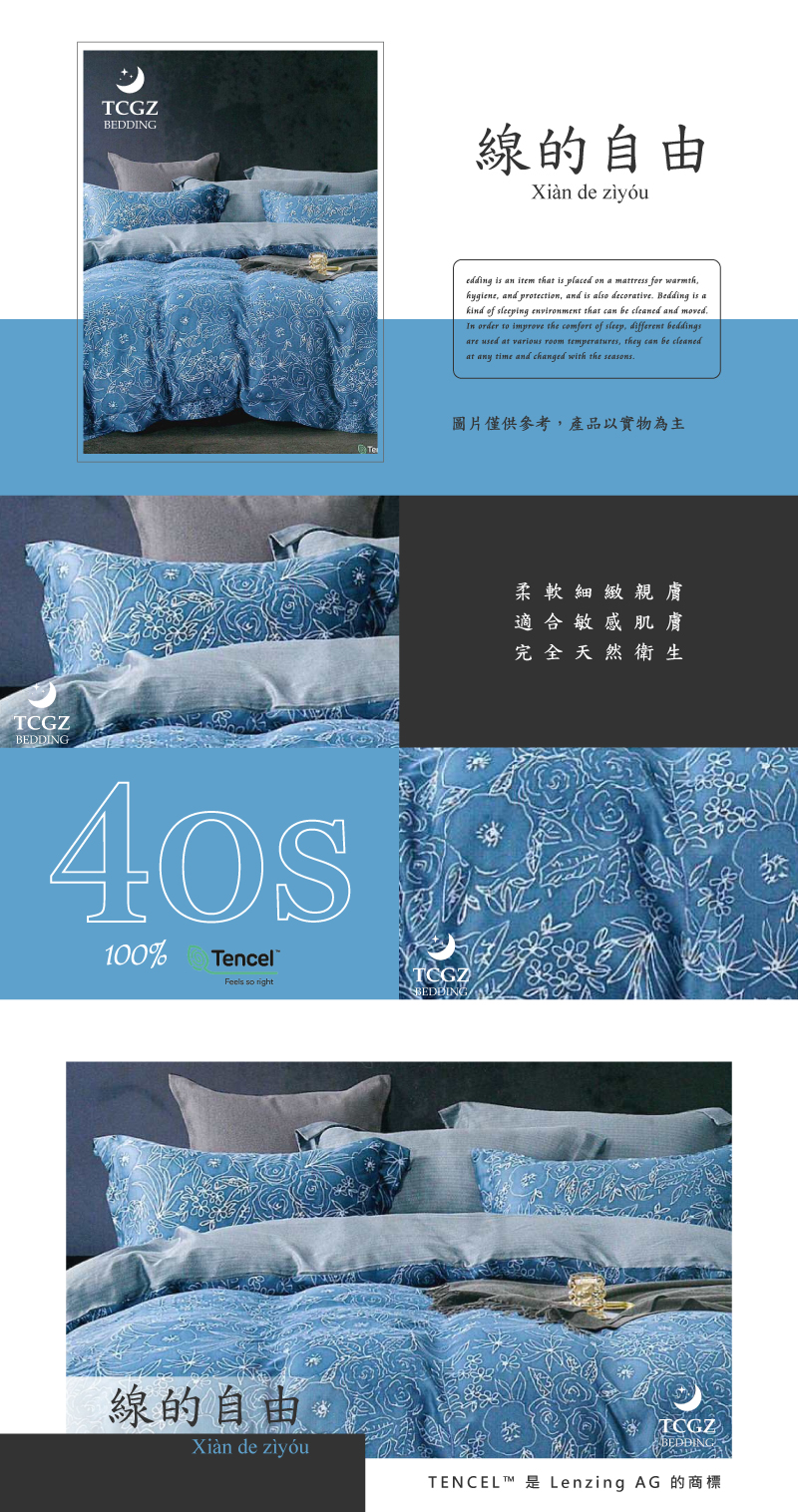 Tencel天絲™萊賽爾纖維製成的 100%40支 【線的自由】 薄床包舖棉兩用被四件式組