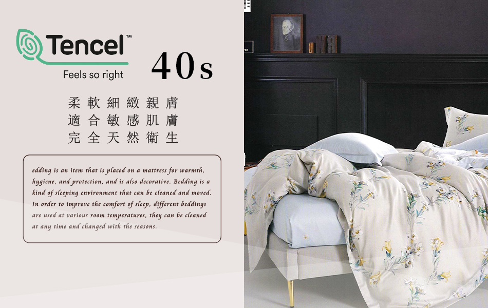 Tencel天絲™萊賽爾纖維製成的 100%40支 【羽甜-黃】 鋪棉床包舖棉兩用被四件式組-40aa