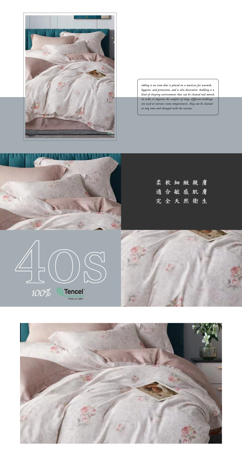 Tencel天絲™萊賽爾纖維製成的 100%40支 【自由派-玉粉】 薄床包舖棉兩用被四件式組