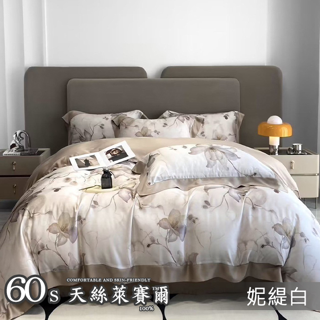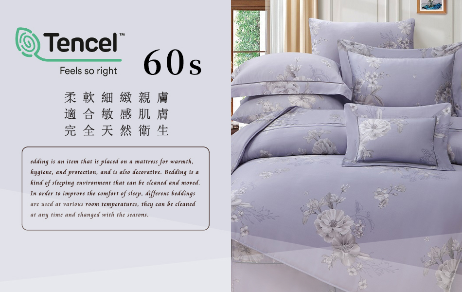 Tencel天絲™萊賽爾纖維製成的 100%60支 【艾洛蒂】 舖棉床罩舖棉兩用被七件式組-60a7