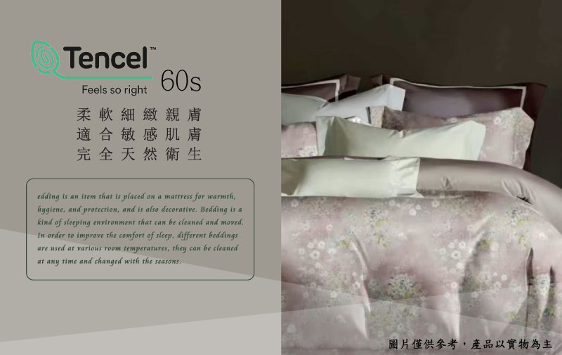 Tencel天絲™萊賽爾纖維製成的 100%60支 【花曉夢】 舖棉床罩舖棉兩用被七件式組