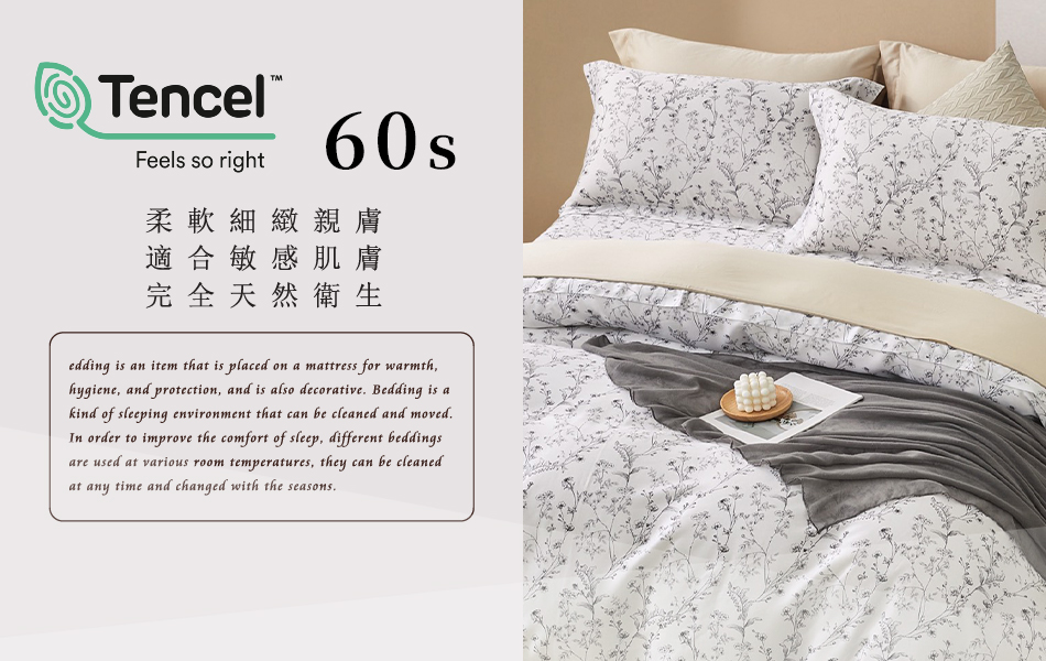 Tencel天絲™萊賽爾纖維製成的 100%60支 【花漫細語】 薄床包舖棉兩用被四件式組-60ab