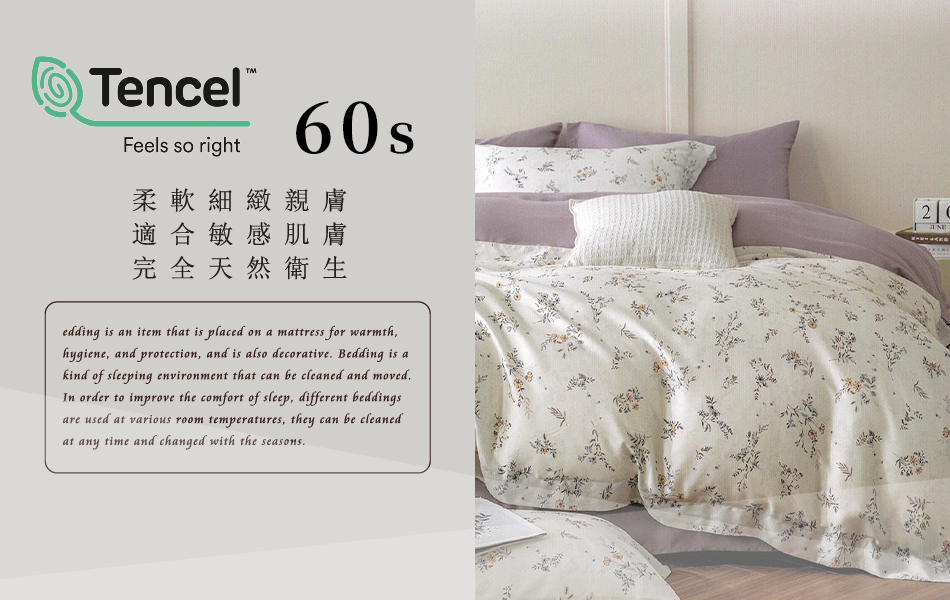 Tencel天絲™萊賽爾纖維製成的 100%60支 【花語心夢-紫】 薄床包舖棉兩用被四件式組-60ab