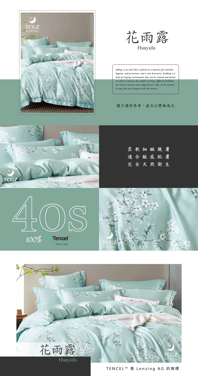 Tencel天絲™萊賽爾纖維製成的 100%40支 【花雨露】 舖棉床罩舖棉兩用被七件式組