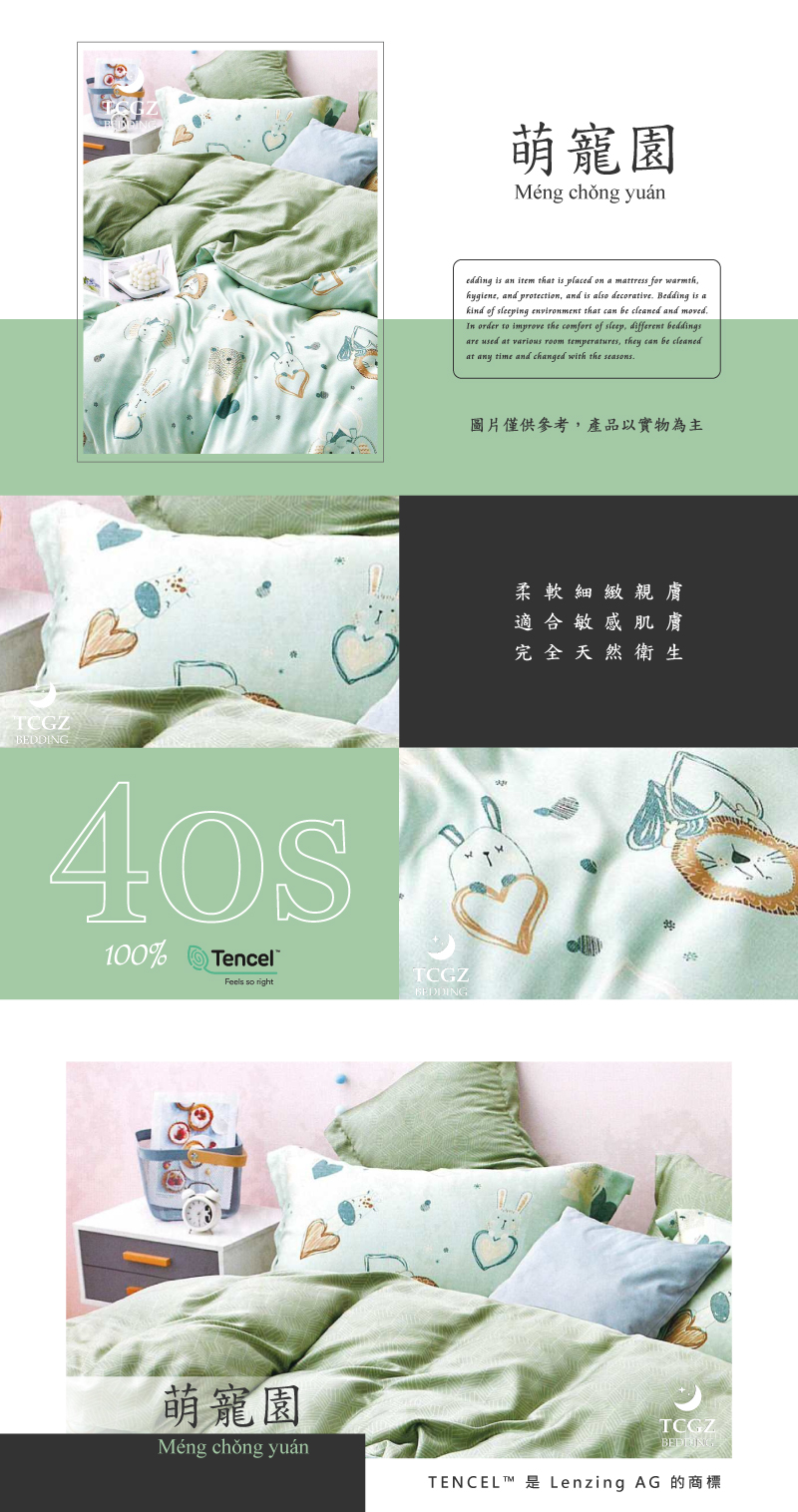 Tencel天絲™萊賽爾纖維製成的 100%40支 【萌寵園】 薄床包舖棉兩用被四件式組