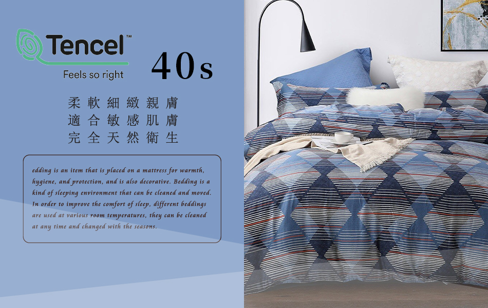 Tencel天絲™萊賽爾纖維製成的 100%40支 【J6-17】 薄床包舖棉兩用被四件式組-40ab