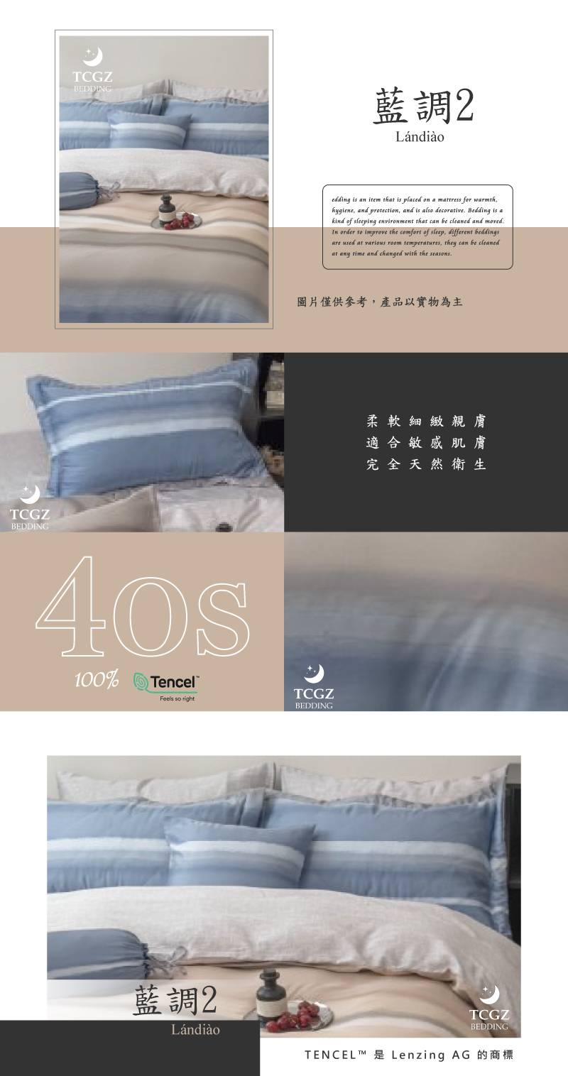 Tencel天絲™萊賽爾纖維製成的 100%40支 【藍調2】 薄床包舖棉兩用被四件式組