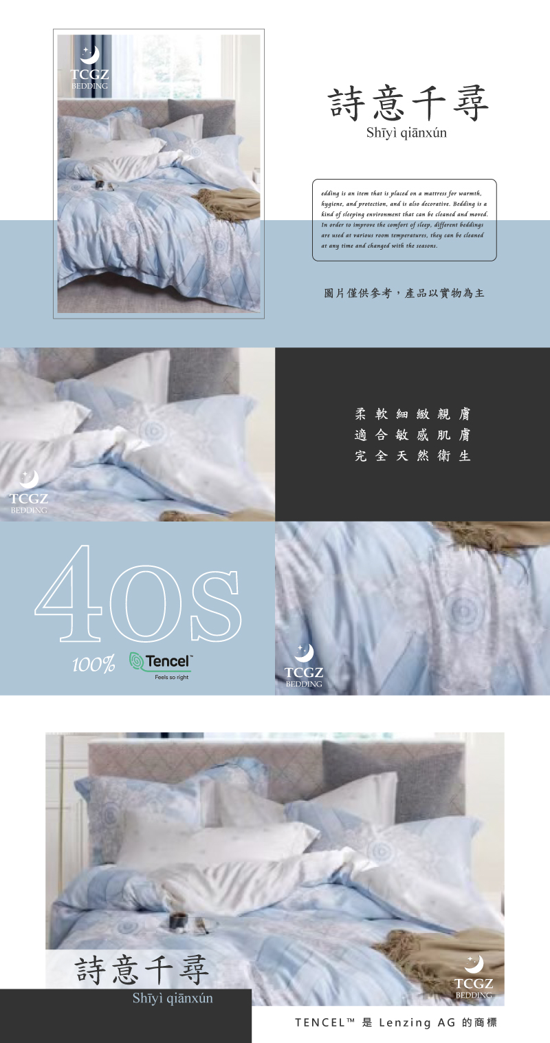 Tencel天絲™萊賽爾纖維製成的 100%40支 【詩意千尋】 薄床包舖棉兩用被四件式組
