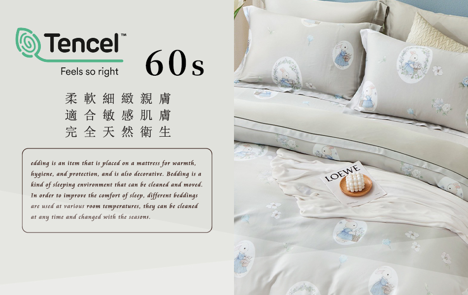 Tencel天絲™萊賽爾纖維製成的 100%60支 【貝拉童夢-灰】 薄床包舖棉兩用被四件式組-60ab