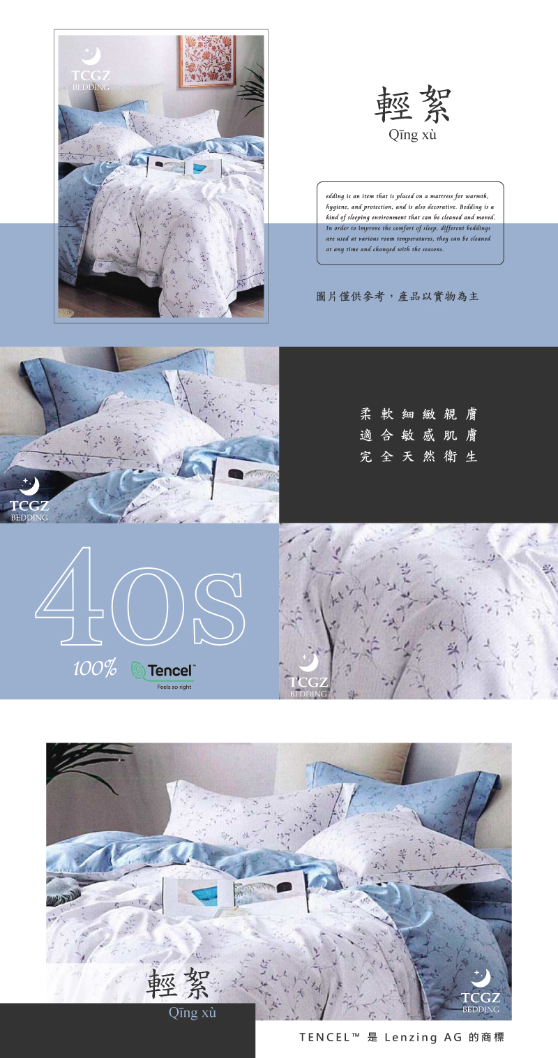 Tencel天絲™萊賽爾纖維製成的 100%40支 【輕絮】 舖棉床罩舖棉兩用被七件式組