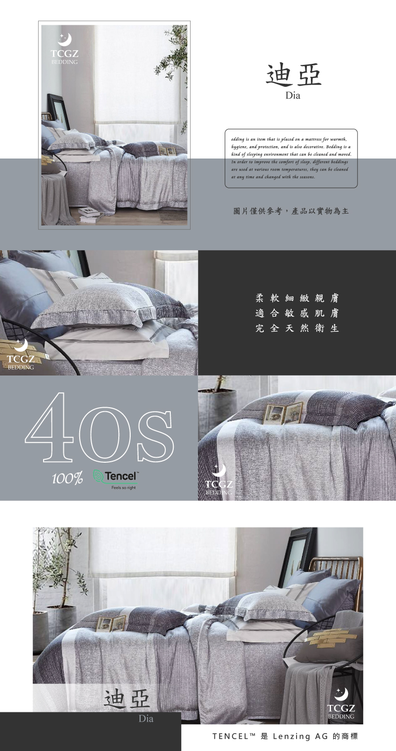 Tencel天絲™萊賽爾纖維製成的 100%40支 【迪亞】 薄床包舖棉兩用被四件式組