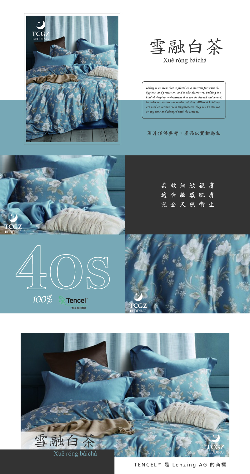 Tencel天絲™萊賽爾纖維製成的 100%40支 【雪融白茶】 舖棉床罩舖棉兩用被七件式組