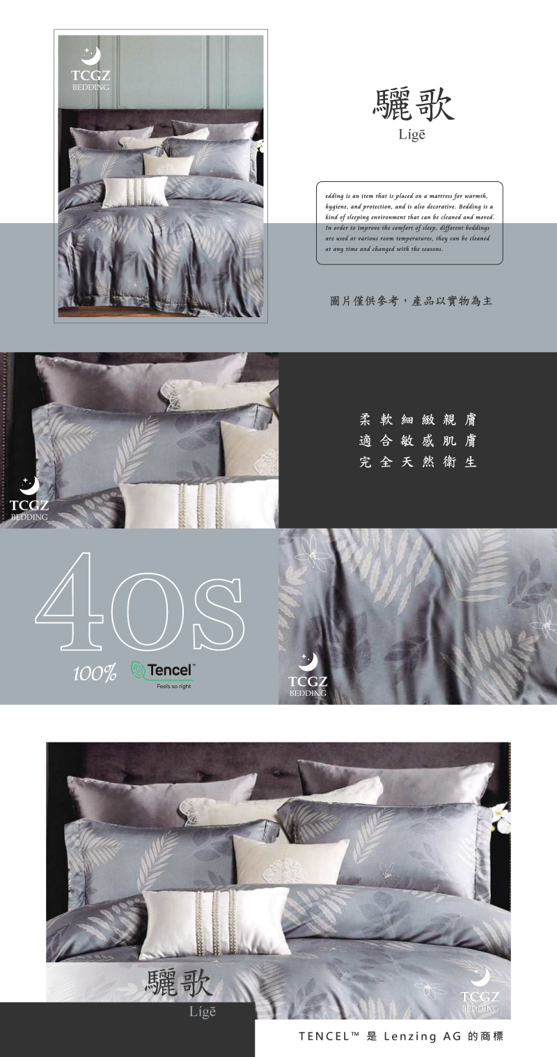 Tencel天絲™萊賽爾纖維製成的 100%40支 【驪歌】 薄床包舖棉兩用被四件式組