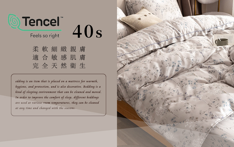 Tencel天絲™萊賽爾纖維製成的 100%40支 【442】 薄床包舖棉兩用被四件式組-40ab