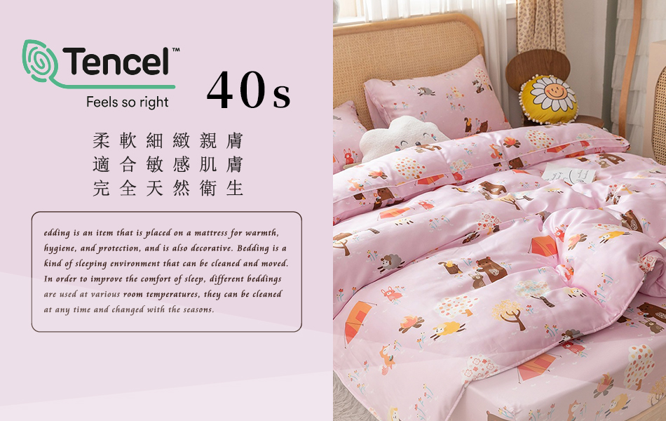 Tencel天絲™萊賽爾纖維製成的 100%40支 【寺四三】 薄床包鋪棉兩用被四件式組-40ab