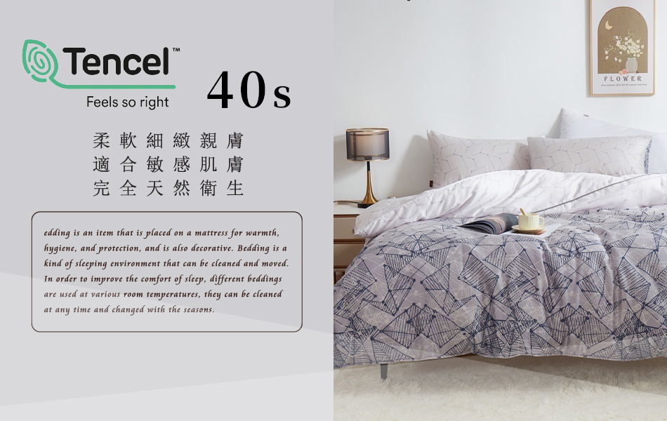 Tencel天絲™萊賽爾纖維製成的 100%40支 【487】 薄床包鋪棉兩用被四件式組-40ab