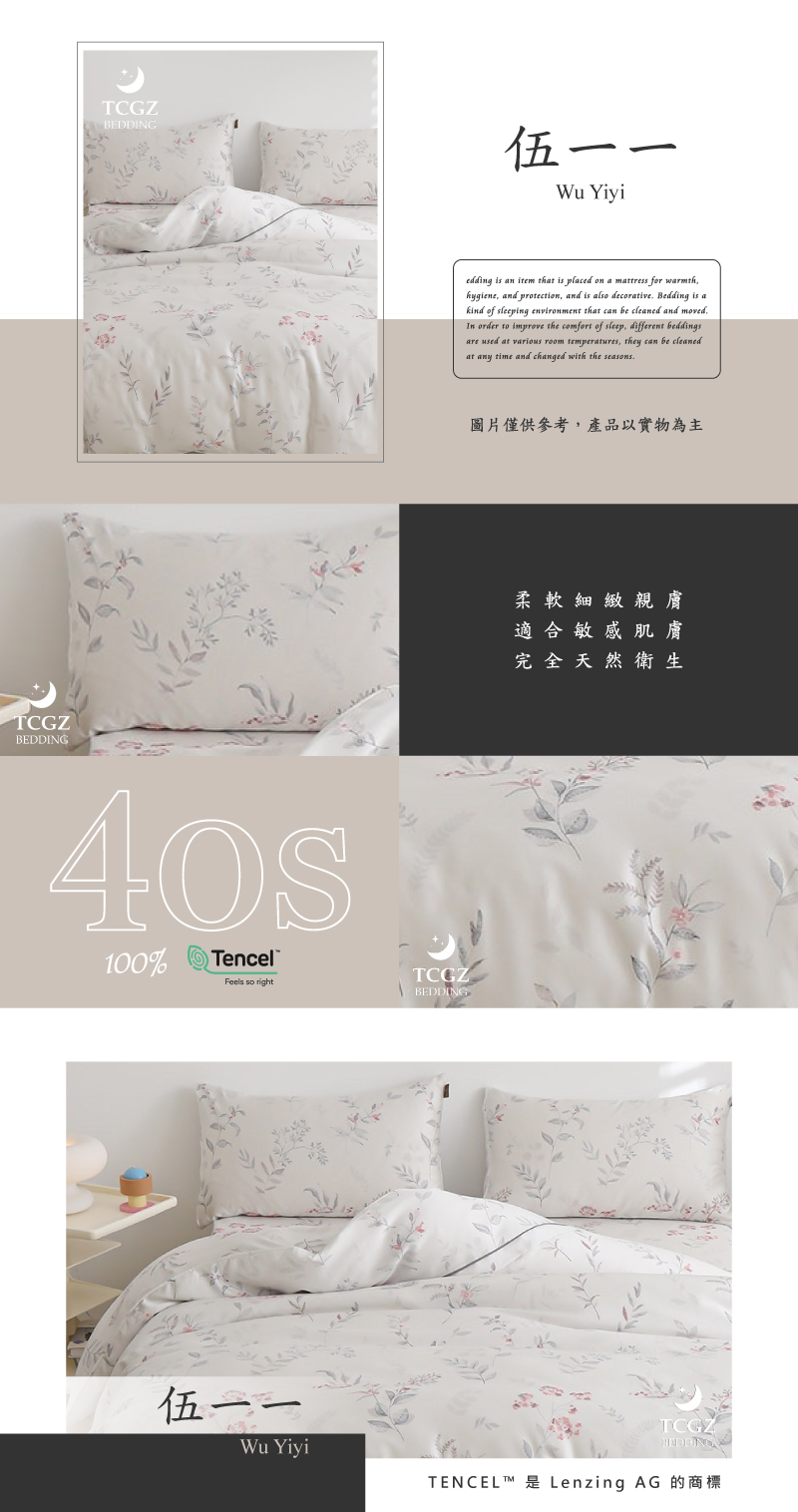 Tencel天絲™萊賽爾纖維製成的 100%40支 【511】 薄床包舖棉兩用被四件式組