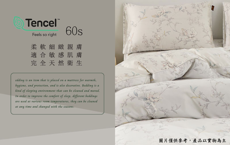Tencel天絲™萊賽爾纖維製成的 100%60支 【6048】 薄床包舖棉兩用被四件式組