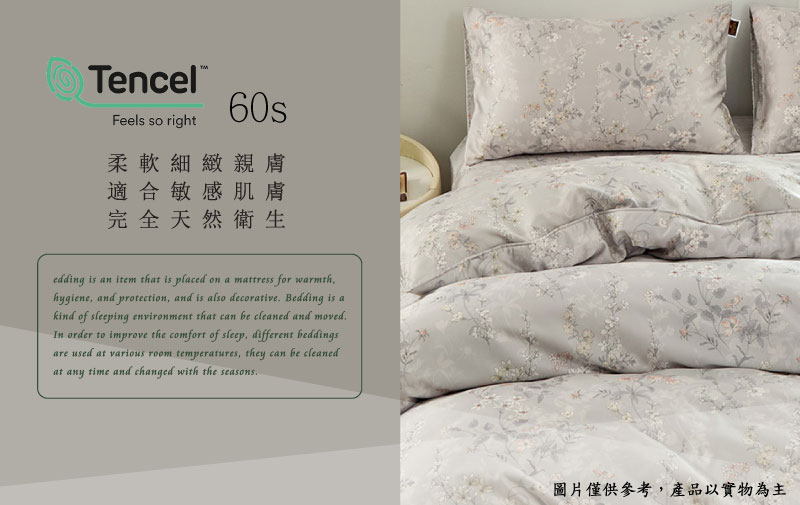Tencel天絲™萊賽爾纖維製成的 100%60支 【6049】 薄床包舖棉兩用被四件式組