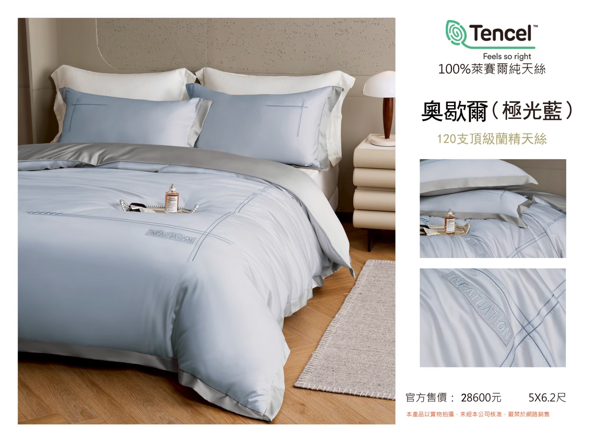 Tencel天絲™萊賽爾纖維製成的 100%120支 奧歇爾【極光藍】 薄床包舖棉兩用被四件式組