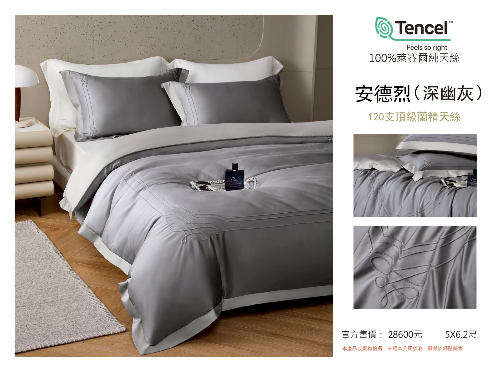 Tencel天絲™萊賽爾纖維製成的 100%120支 安德烈【深幽灰】 薄床包舖棉兩用被四件式組