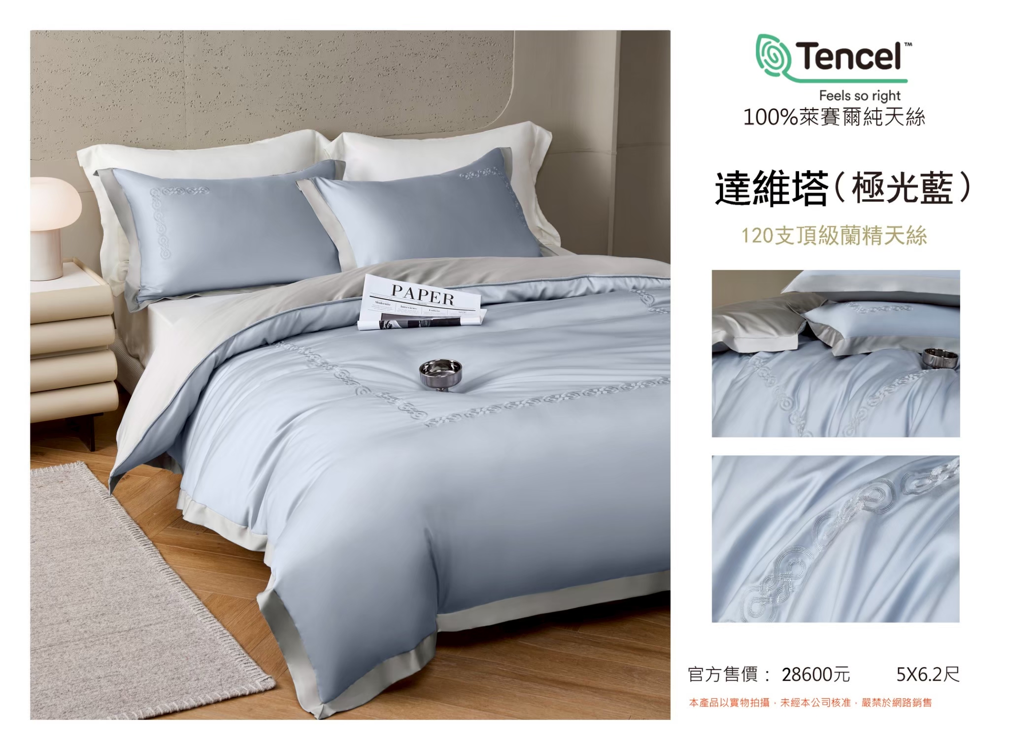 Tencel天絲™萊賽爾纖維製成的 100%120支 達維塔【極光藍】 薄床包舖棉兩用被四件式組