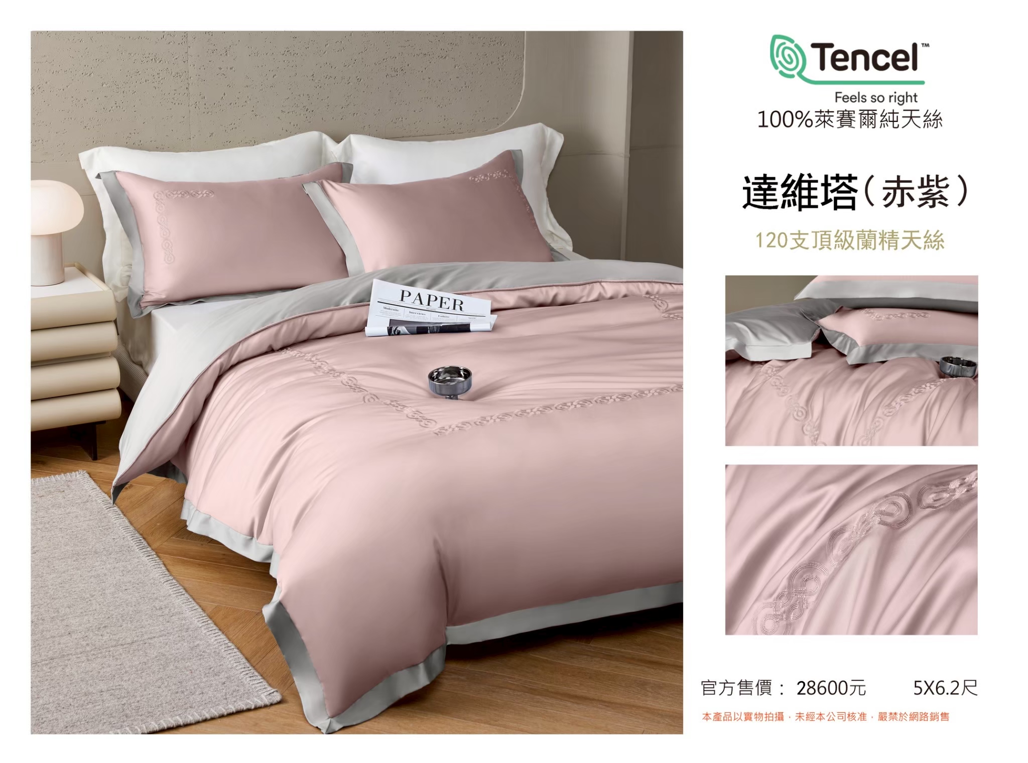 Tencel天絲™萊賽爾纖維製成的 100%120支 達維塔【赤紫】 薄床包舖棉兩用被四件式組