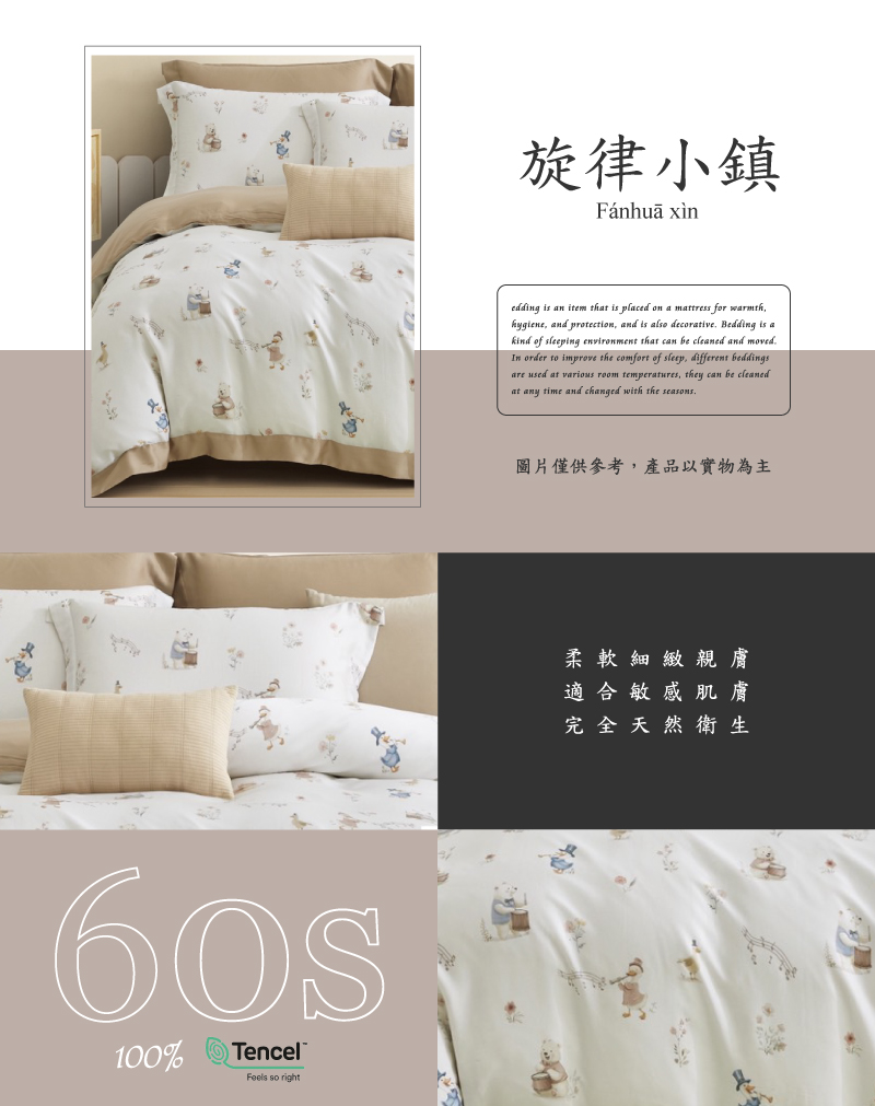 Tencel天絲™萊賽爾纖維製成 100%60支凡芮思【旋律小鎮】 薄床包舖棉兩用被四件式組