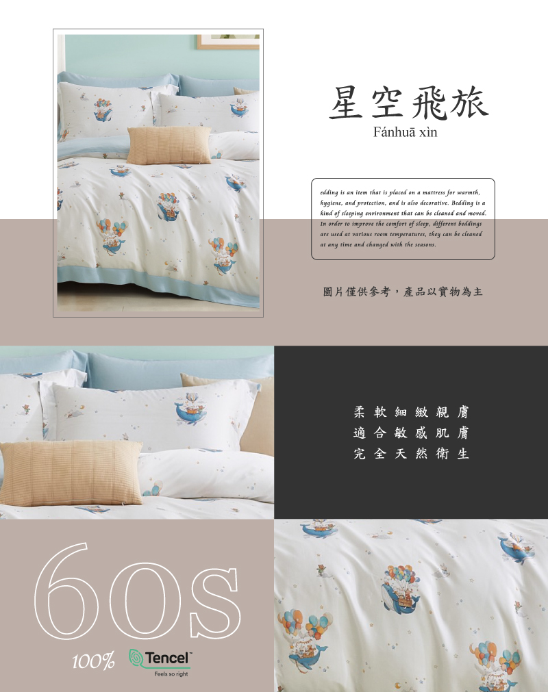 Tencel天絲™萊賽爾纖維製成 100%60支凡芮思【星空飛旅】 薄床包舖棉兩用被四件式組