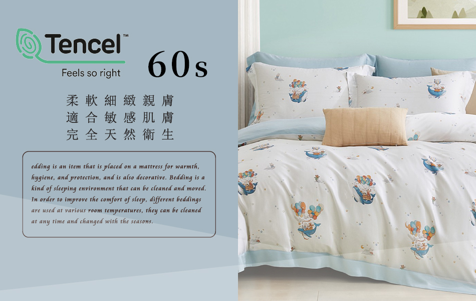 Tencel天絲™萊賽爾纖維製成 100%60支凡芮思【星空飛旅】 薄床包鋪棉兩用被四件式組-60abs