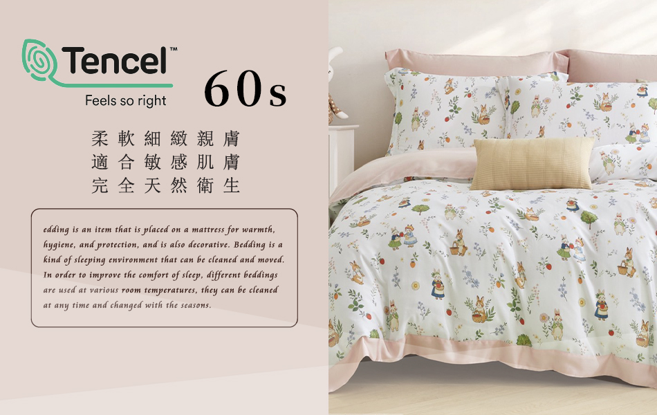 Tencel天絲™萊賽爾纖維製成 100%60支凡芮思【花森童遊】 薄床包鋪棉兩用被四件式組-60abs